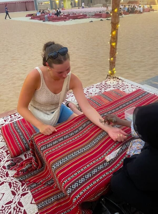 Relax in true desert style with Arabic costumes (subject to availability), henna tattoo for ladies, and complimentary tea, coffee, soft drinks, and unlimited mineral water. Enjoy a delicious BBQ buffet dinner with both veg & non-veg options, plus smoking shisha during dinner time.